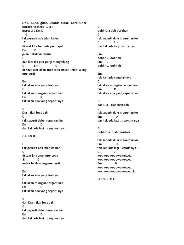 G c d g menghilanglah dari kehidupanku. Chords used (g, c, d, em, am) ~ intro g c d g g c d g g c d g menghilanglah . G c d g enyahlah dari hati yang tlah hancur. Chord rocket rockers ingin hilang ingatan. intro f# b c# f# x2 verse f# b c# f# menghilanglah dari .